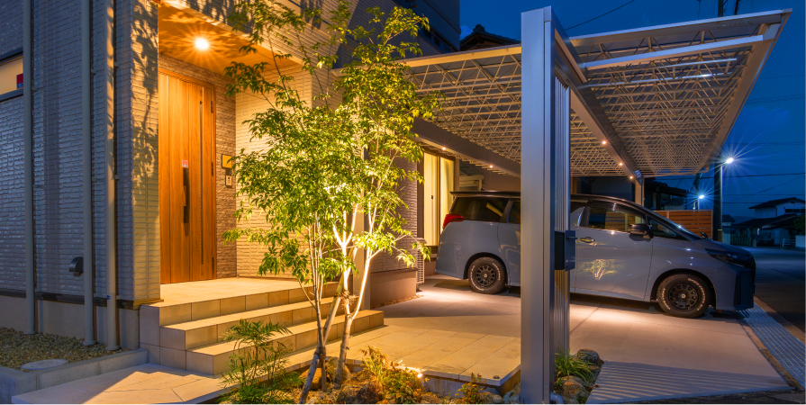 お客様との対話を大切に。門まわりからお庭、照明まで、住まいと調和したエクステリアデザインをご庭案します。