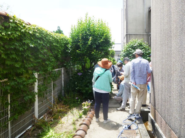 さらに暑い中、屋外へ出ての剪定の実演も皆様熱心に見ていただきました。