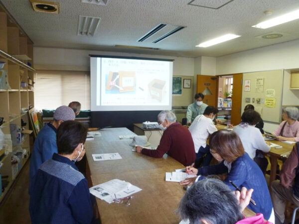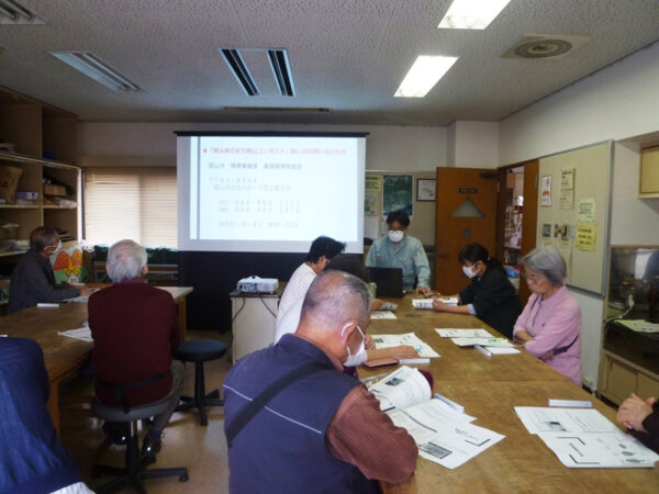 はじめは屋内においてプロジェクターに画像を投影しながら説明を行っています。