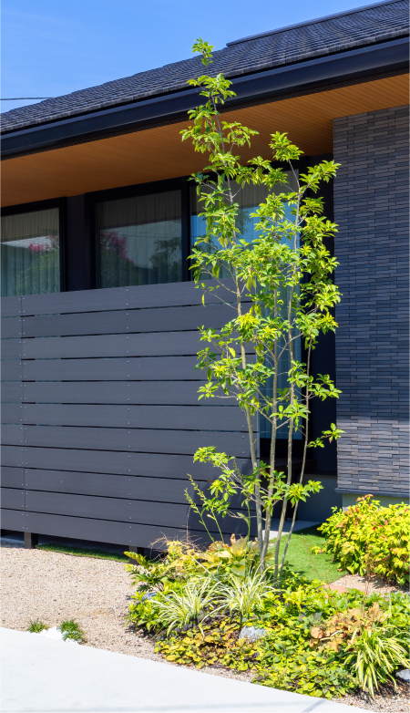 日々の暮らしを豊かにする、人工木と植栽が織りなす空間