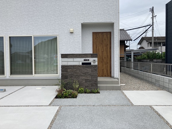 F様邸のエクステリアは、住まいの顔となるエントランスを印象的に演出し、機能美を両立したプランです。