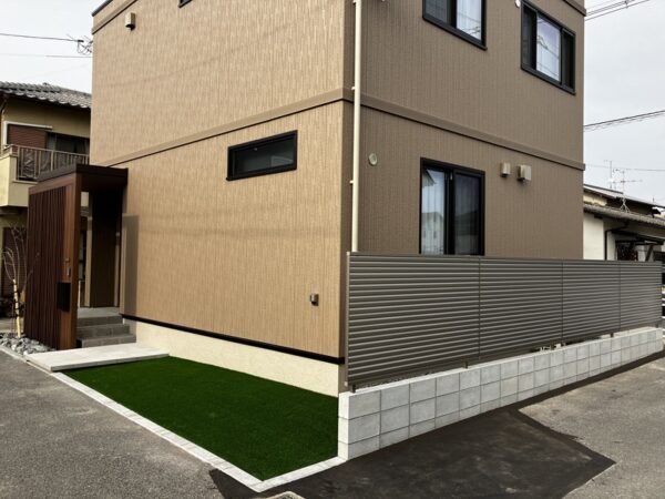 これらの素材と配置の工夫により、H様邸は、デザイン性の高さはもちろんのこと、日々の使い勝手やメンテナンス性にも配慮された、永く愛されるエクステリア空間として完成しました。訪れる人に上質な印象を与える、まさに住まいの顔となるプランです。
