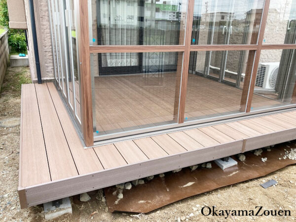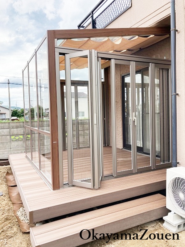 B様邸のエクステリア改修工事では、既存の空間を一新し、住まいと庭が心地よくつながるガーデンスペースを創出しました。 中心にはココマ ガーデンルームタイプを採用しました。前面・側面のガラス窓による開放感と、全開になる折り戸パネルが内と外をシームレスにつなぎ、屋外のような心地よさを提供します。熱線吸収屋根材や内部日除け、腰壁ロールスクリーンなどのオプションにより、日差しとプライバシーを調整し、年間を通して快適なガーデンラウンジを実現します。 足元には、2016年度グッドデザイン賞受賞の樹ら楽ステージ 木彫デッキを設置しました。天然木のような繊細な色ムラと木目の“ゆらぎ”を再現した人工木デッキは、温もりある自然な風合いが魅力です。ココマのフレーム色とデッキカラーをクリエモカで統一し、全体の調和を図りました。多段デッキ採用で、リビングから庭へのスムーズな動線を確保し、使い勝手の良い豊かな空間を創出しました。 このプランは、日々の暮らしに彩りを加え、ご家族の絆を育む「第二のリビング」として、新たなライフスタイルを提供します。
