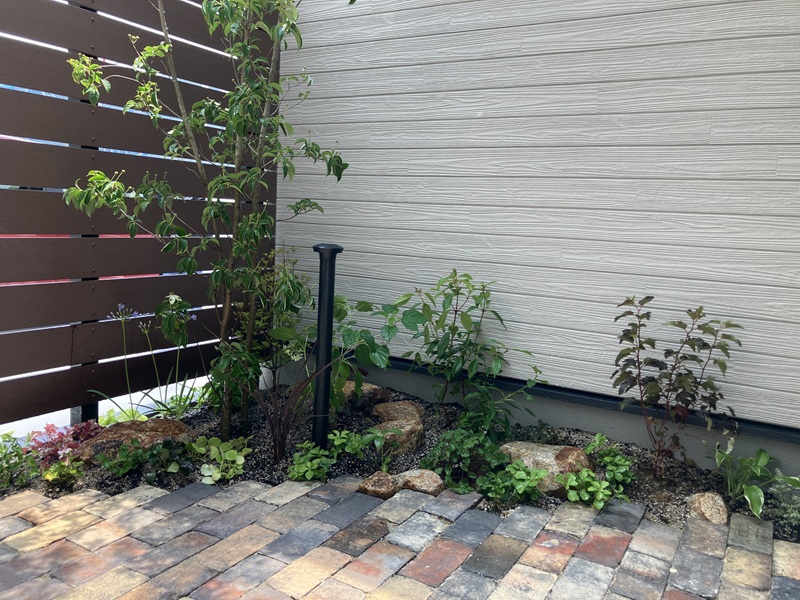 H様邸のエクステリアは、厳選素材と緻密なプランニングにより、お客様の理想を細部まで形にした空間です。