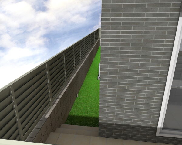 プライバシーをしっかりと守りながら、開放感も感じられるK様邸の境界周り。ドゥー・ロックの境界塀は周囲と調和しつつ、シャイングレーのサニーブリーズA型目隠しフェンスが、外からの視線を効果的に遮ります。隣地とのつながりも考慮した、安心感のある仕上がりです。