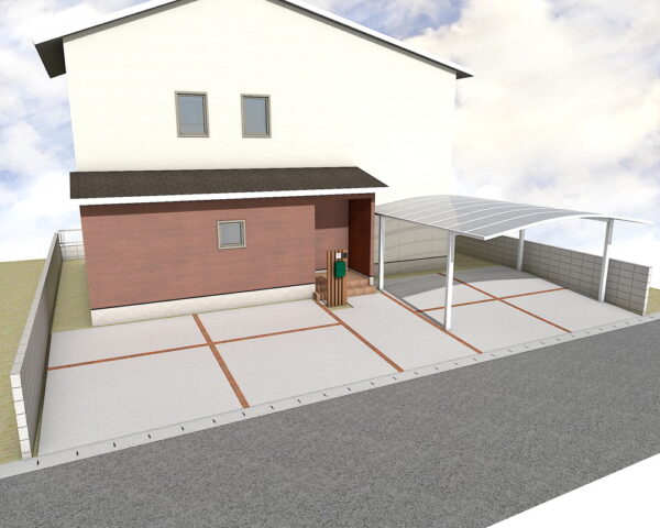 建物周囲には、アプローチや駐車スペースと調和するように、刷毛引き仕上げのコンクリート打ちを広範囲に施工しました。これにより、雑草対策や泥跳ねの軽減など、日常のお手入れが格段に楽になり、いつも清潔で美しい状態を保てます。デザインの連続性が生み出す広がりが、住まい全体に統一感と開放感をもたらし、快適な暮らしをサポートします。