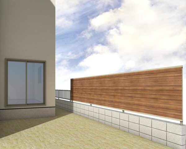 既存のRC擁壁に、コンクリートブロックを3段積み上げ、異なるタイプのフェンスを組み合わせて設置しました。シンプレオT2型フェンス(T60、ピュアシルバー)がシャープな印象を与える一方、シャトレナⅡ 3型フェンス(クラフトチェリー/アーバングレー)は、木調面を敷地内側へ向けることで、住まう方が四季を通じて温かい雰囲気を楽しめるように配慮しています。