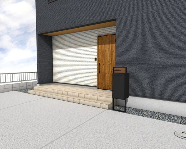 K様邸の顔となる門まわりには、スマート宅配ポストを設置しました。ブラックのフレームとクリエモカのセンターブロックがモダンな印象を与え、インターホン露出タイプで来訪者とのコミュニケーションもスムーズです。切り文字サインが個性を演出し、機能性とデザイン性を兼ね備えたエントランスは、日々の暮らしを豊かに彩ります。