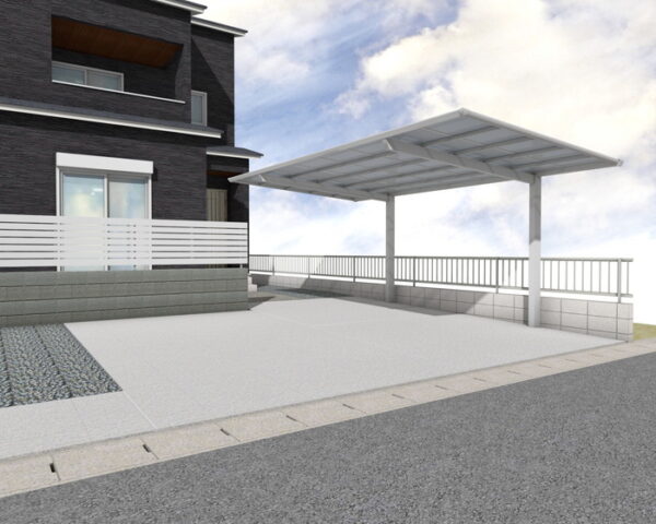 カーポート「セルフィ」は、熱線遮断ポリカーボネート板が日差しを和らげ、駐車空間を快適に保ちます。土間は刷毛引き仕上げのコンクリート打ちで、単粒度砕石の割溝とエキスパンタイの伸縮目地が、デザイン性と機能性を両立させた美しい仕上がりです。実用性と美しさを兼ね備えた、ゆとりの空間をご提案します。