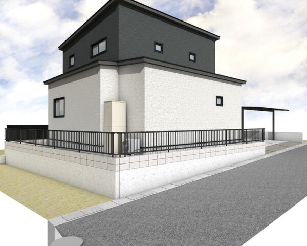 建物の周囲は、防草シートのザバーン240を敷設し、その上から単粒度砕石を敷き詰めました。これにより、雑草の発生を効果的に抑制し、日々のメンテナンス負担を大幅に軽減します。常にすっきりと美しい景観を保ち、住まいの清潔感を際立たせます。