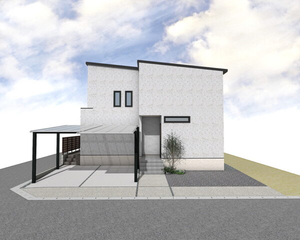 モダンな両側支持タイプのカーポート「スカイリード」が、広々とした駐車空間と開放感を同時に実現します。土間コンクリートは刷毛引き仕上げとすることで、機能的なだけでなく安全面にも配慮されており、大切な愛車を美しく引き立てる洗練された空間を創造します。