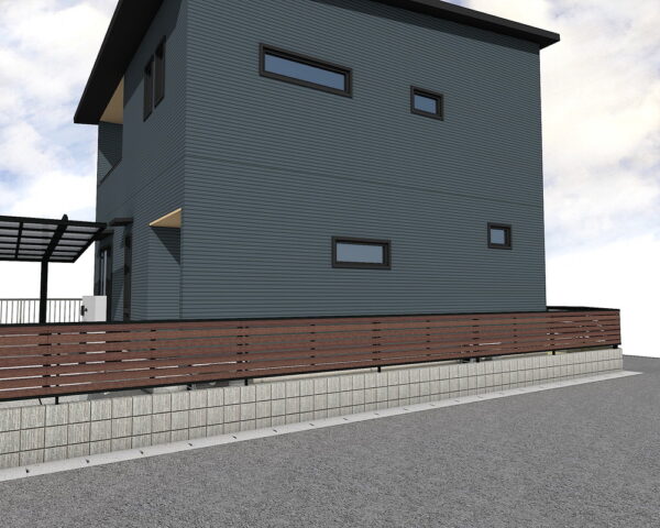 隣地との境界には、既存のブロック塀を活かしつつ、エリダのザラグレーを3段積み重ね、モダンな印象の境界塀を構築。シャトレナⅡ1型フェンスのスモークナットとブラックの組み合わせが、周囲の景観に溶け込みながらプライバシーを確保します。機能性とデザインを両立した、安心できるプライベート空間です。
