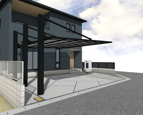 広々とした駐車スペースには、刷毛引き仕上げの土間コンクリートを採用し、滑りにくく安全な歩行をサポート。スタイリッシュなブラックのエキスパンタイ目地がデザイン性を高めます。2台用カーポート、フォーグワイドの熱線遮断ポリカーボネート屋根は、夏の強い日差しを和らげ、快適な乗り降りを実現します。