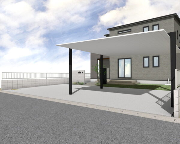 カーポートSCは、ロング柱の採用で視界を遮らず、ブラックの柱とナチュラルシルバーFの屋根が建物と調和し、住まいの景観を一層引き立てます。大切な愛車を保護しつつ、EV・PHEV充電用屋外コンセントの設置で未来を見据えた機能性を両立。美しい刷毛引き仕上げの土間は、機能とデザインを兼ね備えた駐車空間です。