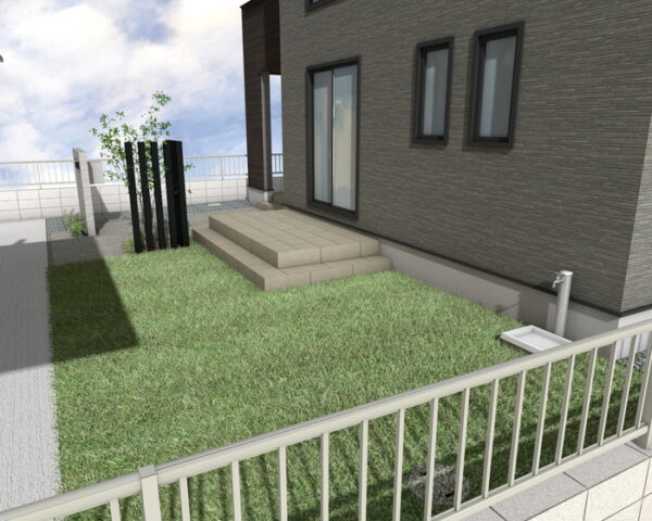 境界には、CBブロック積みとシンプレオフェンスT2型を設置しています。プライバシーを確保しつつ、T60サイズのプラチナステンカラーが開放感とモダンな印象を両立させます。周囲の景観と美しく調和し、ご家族の安全を守りながらも、圧迫感のない快適な外周空間を創出しています。