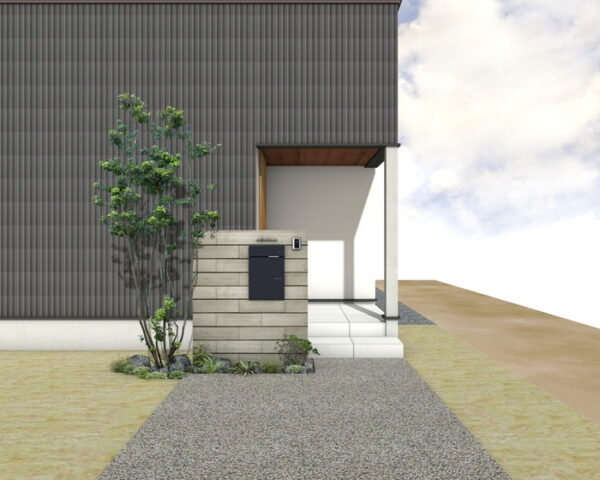 機能性とデザイン性を兼ね備えた門柱は、住まいの顔としてN様邸を印象付けます。重厚感あるスギーウォールと落ち着いたシプレの表札が、洗練されたエントランスを演出。後出しタイプの宅配ボックス、ヴィコDB100は荷物の受け取りもスムーズで、鍵とダイヤル錠で安心です。マットブラックが引き締まった表情を見せます。
