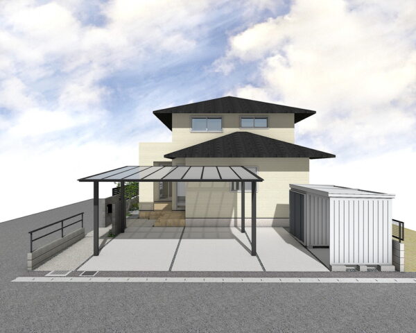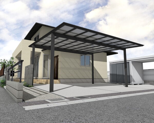 日々の暮らしを快適にする駐車スペースには、二台用のネスカFカーポートを設置。雨の日も安心のゆとりある設計で、大切な車を守ります。滑りにくく美しい刷毛引き仕上げの土間コンクリートは、シンプルながら機能的。統一感のある割溝が、空間にデザイン性を添えます。