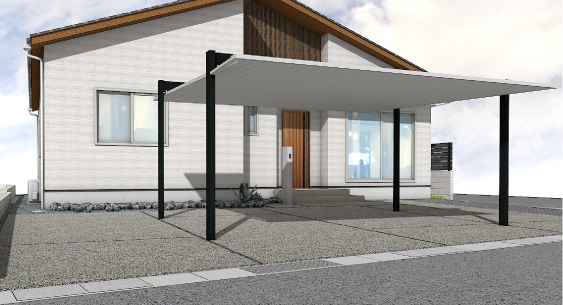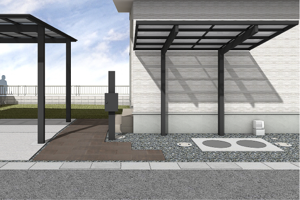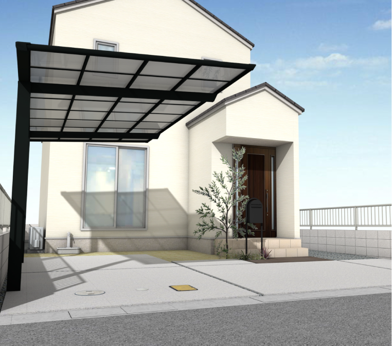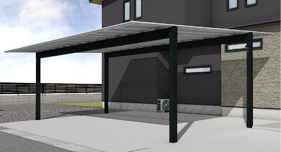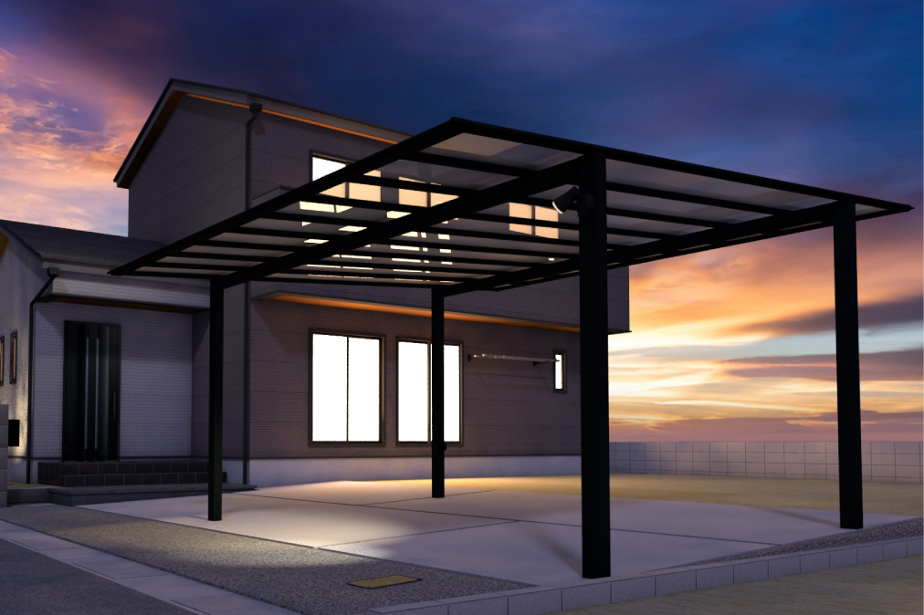 車種や敷地形状に合わせてサイズ・デザイン・屋根材を自由に選べるため、門まわりやファサードとの調和も実現。エクステリア全体の統一感を高める外構アイテムとしても優秀です。