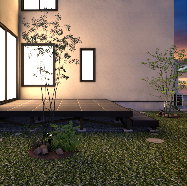 ウッドデッキは、お庭とお部屋をつなぐ人気のエクステリアアイテム。リビングとフラットに設置することで、「内」と「外」につながりを生み、まるで「もうひとつのリビング」のような贅沢な空間を演出できます。