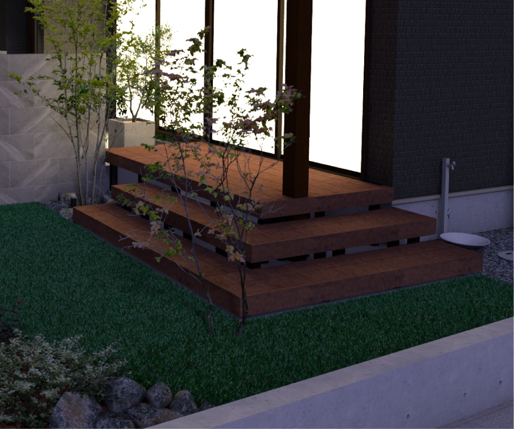 タイルデッキは、リビングと庭を緩やかにつなぎ、屋内外に心地よい広がりをもたらすエクステリアアイテムです。コンクリート下地にタイルを貼って仕上げることで、高級感のある外構デザインを実現。モダンで上質な印象を演出しながら、住まい全体の価値を高めてくれます。