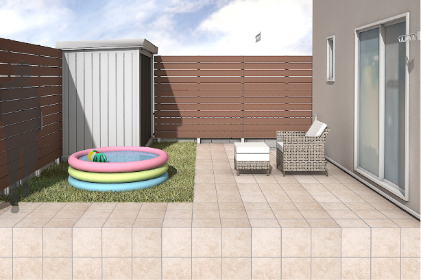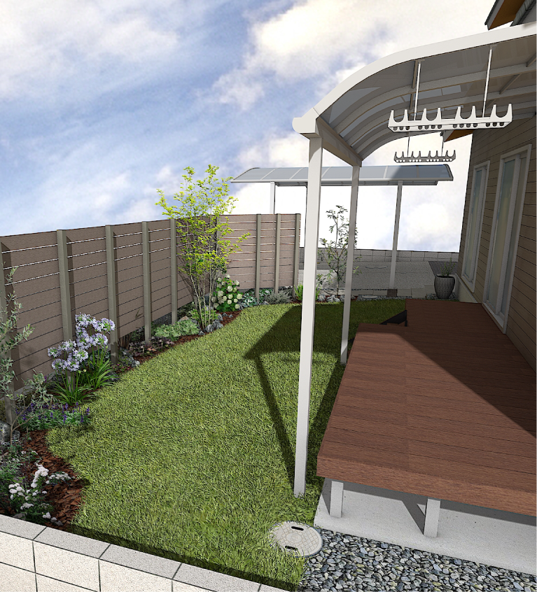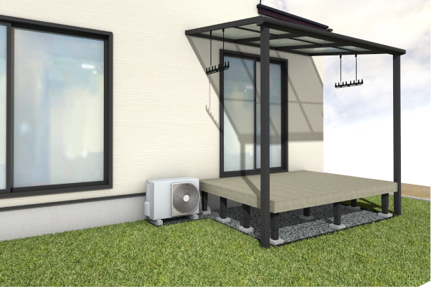 また、紫外線や雨にも強く、腐食の心配が少ないため、耐久性・メンテナンス性にも優れた素材です。洗濯物干しやBBQスペースなど、多目的に使える空間は、日々の暮らしをより快適に彩ります。