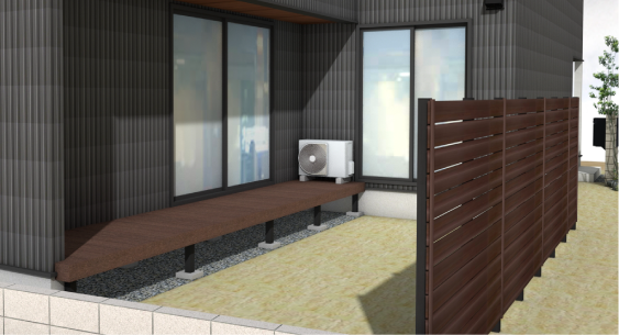 お庭や景色を眺められ、自然を身近に感じられる贅沢な時間が。また、囲いや目隠しを設ければ、落ち着いて過ごせるプライベートな外構空間としても活用できます。