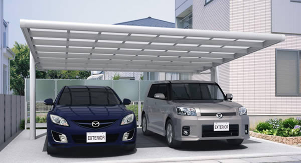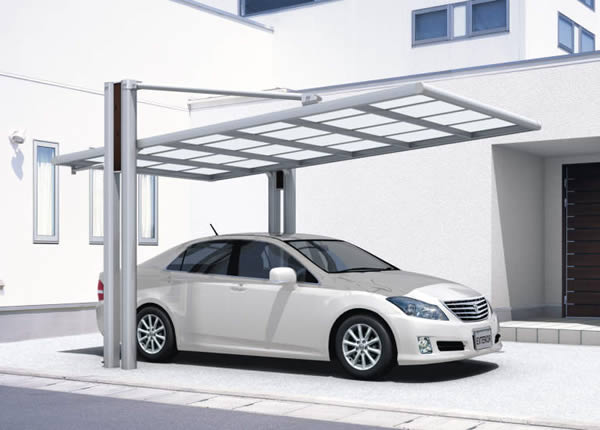 4つのコンセプトから生まれたスマートなスタイルの後方支持カーポート